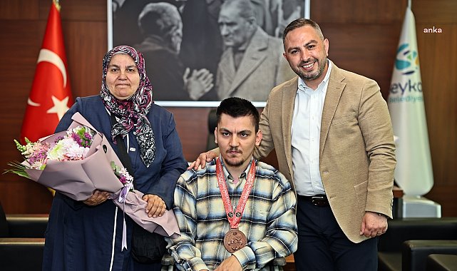 (İSTANBUL) - Kayseri'de düzenlenen Bilek Güreşi Türkiye Şampiyonası’nda bronz madalyanın sahibi olan özel sporcu Yiğit Ertop, Beykoz Belediyesi’ni ziyaret etti. Ertop, "Asla durmadan çalışmalarıma devam ederek, altın madalyayı Beykoz’a getireceğim" dedi.Türkiye Vücut Geliştirme, Fitness ve Bilek Güreşi Federasyonu tarafından 7-12 Nisan 2025 tarihlerinde Kayseri’de düzenlenen Bilek Güreşi Şampiyonası’nda kazandığı bronz madalyayla ilçenin göğsünü kabartan Yiğit Ertop, annesi Habibe Ertop ile birlikte Spordan Sorumlu Beykoz Belediye Başkan Yardımcısı Melih Karakaya’yı ziyaret etti.Beykoz Belediyesi Spor Hizmetleri Müdürü Vaner Pekin’in de hazır bulunduğu ziyarette, yaklaşık üç ay süren çalışmalarının sonunda bronz madalyayı kazandığını belirten Ertop, “Asla durmadan çalışmalarıma devam ederek, altın madalyayı Beykoz’a getireceğim” ifadelerini kullandı.Ziyaretten duyduğu memnuniyeti dile getiren Karakaya da “Yiğit gibi özel evlatlarımızın başarıları bizleri gururlandırıyor, onların her zaman destekçisiyiz. Yakında açılacak fitness merkezimizde Yiğit antrenmanlarını artırarak bir sonraki seferde altın madalyayı kazanacak, ona inancımız tam" diye konuştu.
