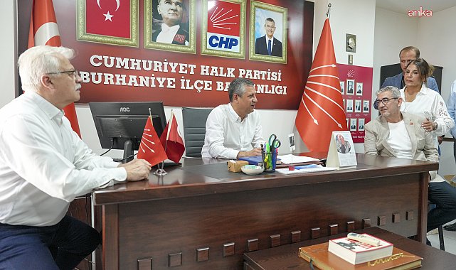 (ANKARA) - Cumhuriyet Halk Partisi Genel Başkanı Özgür Özel, CHP Burhaniye İlçe Başkanlığını ziyaret etti, bina önünde toplanan vatandaşlarla bir araya geldi. Cumhuriyet Halk Partisi'nden yapılan açıklamaya göre CHP Genel Başkanı Özgür Özel, Balıkesir'in Burhaniye ilçesinde bir dizi temaslarda bulundu. CHP Burhaniye İlçe Başkanlığını ziyaret eden Özel, başkanlık binası önünde bulunan vatandaşlarla bir araya geldi. CHP lideri Özel, daha sonra Bornova Anadolu Lisesi’nden arkadaşı Evren Arpat’ın vefat eden dayısı Tayfun Bardakçı’nın İskele Camisi’ndeki cenaze törenine katıldı.