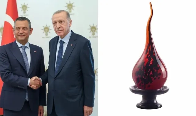 (ANKARA) - Cumhurbaşkanı ve AKP Genel Başkanı Recep Tayyip Erdoğan ile CHP Genel Başkanı Özgür Özel arasında gerçekleşen görüşmede karşılıklı hediyeler verildi. Alanan bilgiye göre, CHP Lideri Özgür Özel, Cumhurbaşkanı ve AKP Genel Başkanı Recep Tayyip Erdoğan'a "Cumhuriyet Ateşi" isimli objeyi ve Manisa’daki Uluslararası Mesir Macunu Festivali’nden getirdiği mesir macununu, Erdoğan da Özel'e fincan takımı, çay ve bal hediye etti.