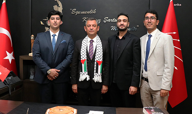 (ANKARA) - CHP Genel Başkanı Özgür Özel, Filistinli Öğrenciler Birliği temsilcileriyle TBMM'de bir araya geldi. CHP Genel Başkanı Özgür Özel, Filistinli Öğrenciler Birliği temsilcilerini TBMM'de ağırladı. Türkiye'de eğitim gören Filistinli gençler; Filistinli arkadaşı İsa tarafından Deniz Gezmiş'e hediye edilmek istenen "Filistin Şiiri" isimli kitabı, oğlunun selamı ile "Deniz Gezmiş'in yolundan" gittiği ifadeleriyle Özel'e hediye etti.