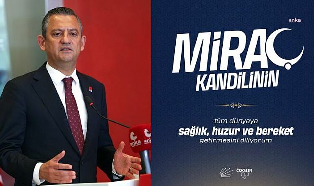(ANKARA) - CHP Genel Başkanı Özgür Özel, Miraç Kandili dolayısıyla mesaj yayımladı. Özel, kandilin tüm dünyaya sağlık ve kardeşlik getirmesini diledi. Miraç Kandili dolayısıyla CHP Genel Başkanı Özgür Özel X hesabı üzerinden bir mesaj yayımladı. Özel'in mesajında, "Bugün idrak ettiğimiz Miraç Kandili'nin ülkemize, tüm dünyaya ve tüm insanlığa sağlık, barış, huzur, bereket ve kardeşlik getirmesini diliyorum" ifadeleri yer aldı.