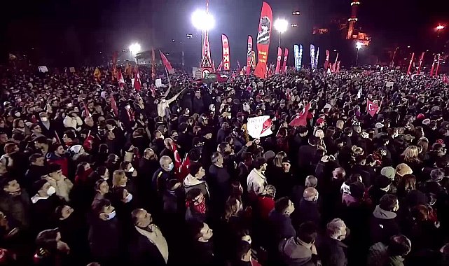 (İSTANBUL) - CHP Genel Başkanı Özgür Özel, Saraçhane’de; ''FETÖ’cüler firarda ama maalesef fikirleri ve marifetlere sarayda ve sarayın aparatlarında. Şu kadar ki kişinin evine baskın yapıyorlar, bir şey yok. Şirketine gidiyorlar, kasasını açtırıyorlar, iki deste parayı yayıyorlar evde bulunan paralar diye servis ediyorlar. 12 yıl önce devlet bankasının genel müdürünün evinde ayakkabı kutularında paralar çıkınca önce, 'Faiz haram, parayı evde tutabilir' dediler. Bakan evlatlarının evlerinde koli koli paralar çıkınca kumpas kuruldu, FETÖ’cüler koydular dediler. Günü gelip de işin üstünden bir yıl geçince yazı isteyip el konulan paraları faiziyle geri istediler. Ama yarından itibaren bir kırılma yaşanacak. Yarından itibaren bakan evlatlarının devri bitecek, vatan evlatlarının devri başlayacak'' dedi. Özel, Ekrem İmamoğlu'nun eşi ve oğluyla birlikte Çağlayan'a gideceğini söyledi.CHP Genel Başkanı Özgür Özel, İstanbul Büyükşehir Belediye Başkanı Ekrem İmamoğlu'nun gözaltına alınmasının dördüncü gününde belediyenin merkezinin bulunduğu Saraçhane'deki ''Halk Buluşması''nda vatandaşlara hitap etti. Alandakilerden havai fişek atmamalarını isteyen Özel, şunları söyledi:''O taraftan bir daha tek bir gaz istemiyoruz. En sert tepkiyi hep birlikte gösteririz. Bizi buna mecbur bırakmayın. Bir daha bizim kitleden kimse, gençlik kolları asla görmeyeceğim. Değerli arkadaşlar şimdi, bundan sonra Bozdoğan’ın oraya, o tarafa polise doğru da bir şey atılmayacak. Polis de bu tarafa gaz sıkmayacak. Bunun bir başka yolu yok. Bunu böyle sürdüreceğiz. Bu geceyi doğru yöneterek Ekrem Başkanımızı alarak, arkadaşlarımıza alarak, meydanı, sokağa geri alarak ancak buradan ayrılacağız. Bizim gücümüz cesaretimiz de haklılığımmız da, haklıyken haksız duruma düşmeyeceğiz. Ekrem Başkan’a bugün dün buradaki o dünyanın en çok izlenen klibini çektiğimiz, sizlere bir mesajını sorduğumuzda şunu söyledi. Saraçhane’ye sahip çıkın. Demokrasiye sahip çıkın. Bana sahip çıkmanın yolu sandığa sahip çıkmaktır. Sandığa sahip çıkmanın yolu 23 Mart Pazar günü demokrasi devrimine, önce 1 milyon 500 bin üyemiz de çıkıp şimdi 1 milyon 750 bin üyemizle yarın oy kullanacağımız sandıkların yanına son haftaki gelişmelerden sonra birer dayanışma sandığı da koyduk. Yarın Türkiye’nin dört bir yanında 81 ilinde, 973 ilçede tam tamına 5 bin 960 CHP sandığı, tam yanında 5 bin 960 dayanışma sandığı olacak. Üyelerimize gelin, seçin, tarihe geçin derken yine üyelerimize yarından itibaren...”Alanda bir grubun havai fişek atılması üzerine uyarı yapan Özel, şöyle devam etti:''1 Mayıs’ta bu kitleye Taksim’i isteyeceğiz''“Buradan bir halk oylaması yapacağım. Meydanda 'Burayı terk edelim Bozdoğan Kemeri’ne gidelim çatışalım' diyenler el kaldırsın. Bunu yapmayalım, mücadeleyi haklı zeminde koruyalım diyenler. Al sana meydan, alsana sağduyu. İşte haklılığın gücü. Oraya gidip devletin polisine kanunsuz emir verilmiş, buradan ileri gitmesin demiş, o polisin oraya gidip de arkadaşlarınızı da yaralatmayın, haklıyken haksız da çıkmayın. Meydanın yüzde 99’u mücadele burada diyor. İşte biz bu yüzden kazanacağız. Ant olsun ki bu meydanın bu birlikteliği, bu inancı ve bu sağ duyusu hep birlikte Taksim'i alacağız. Söz veriyorum. Bu büyük yasağa rağmen milyon olup buraya gelenlere söylüyorum önce Taksim’i isteyeceğiz. Ne zaman? Nisanda. 1 Mayıs’ta bu kitleye Taksim’i isteyeceğiz. Açacaklarsa açacaklar, açmazlarsa biz açacağız orayı. Bu Saraçhane’ye, Çağlayan’a sahip çıkmaya ve 1 Mayıs’ta Taksim’i almaya var mıyız? İşte bu güç kazanır. Yasakları aldığınız tayyip Bey’in elinden. İstediği kadar uzatsın. Son sözü bu ülkede artık ben bilirim, ben değil siz biliyorsunuz, siz söylüyorsunuz.''Tayyip Bey’in iktidarında karnını doyuran var mı?''Yarın 1 milyon 750 bin 000 üyemizle gelin seçin, tarihe geçin demiştik. Şimdi tüm üyelerime sesleniyorum. Eşini, dostunu, komşunu oy kullanmaya teşvik et. Yarın 23 Mart Türkiye baharına, demokrasi devrimine katılmaya, bundan sonraki sandıklar gitmesin diye yarın sandığa koşmaya var mısınız? Türkiye’nin dört bir yanında hiç bulamayan il başkanlıklarında, ilçe başkanlıklarında CHP’nin sitesinden baktığınızda hemen hemen mahallede sandık var yerini CHP üyeleri biliyor. Yarın biz kimin gideceğini biliyoruz. Onu gönderecek ismi belirlemek için sandıkları koşuyoruz.Gerçekten bir aralar Tayyip Bey, '15 bin dolar oldu milli gelirimiz, artık çok iyi bir noktaya geldik, dünyada 67'inci sıraya tırmandık' dedi. Ekonomistler buna isyan etti ve şunu açıkladılar: 1997 yılında 60’ıncıydı, 1998’de 59’uncuydu. 20 yıl önce bin 800 dolarlık milli geliri ile yine 61'inci sıradaydı. 30 yıl önce 61'inci sıradaydı bugün Tayyip Bey ilk geldiğinde yani 2003’te 67'nci sıradaydı bugün yine 67. sırada. Ondan önce adım adım zenginleşen büyüyen Türkiye şimdi yerinde sayarken Tayyip Erdoğan yarattığı yoksulluğu, doları baskılayarak, yalandan milli gelir artışı yaparak hepimizi yutturmaya çalışıyor. Ama ben buraya Saraçhane’ye soruyorum. Tayyip Bey’in iktidarında karnını doyuran var mı? Zenginlik var mı? Demokrasi var mı? Gençlerin umudu var mı? Gençlerin gelecekten tek bir umudu var o da Tayyip Erdoğan’ın gitmesidir. Yarın Tayyip Bey’in yerine kimin geleceğini karar vermeye var mıyız? İlk kez tüm halka açık olarak resmi kayıtlı üyeler resmen diğerleri dayanışma oylarıyla yarın milyonlar kendisini saydıracak, iradesini ortaya koyacak. Yarın hep birlikte tek adamın karşısına bir yiğidi koyacağız. On milyonlar duracak, hadi dokunsunlar bakalım.