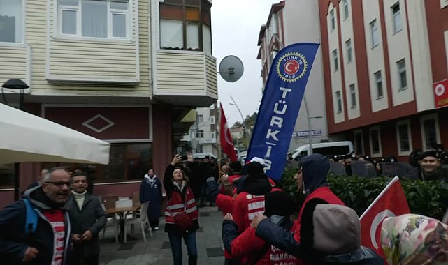 Haber: Çağatan AKYOL-Kamera: Onur DURSUN(İSTANBUL)- Sendikaya üye olduktan sonra işten çıkarılan Çatalca’daki Polonez işçilerinin Ankara’ya yürüyüşüne polis yine müdahale etti. Güvenlik güçleriyle işçiler arasında zaman zaman arbede yaşanırken, bazı işçiler fenalık geçirdi. İşçiler, eylemlerini Çatalca Adliyesi önünde beyaz kefen giyerek sürdürdü.Sendika üyesi olduktan sonra işten çıkarılan Polonez işçileri yaklaşık 5 aydır hakları için mücadele ediyor. Fabrika önünde haftalar süren eylem sonrası işçiler, seslerini duyurmak için Ankara’ya yürümek istedi.İki gündür Çatalca Adliyesi önünden hareket etmek isteyen işçilere polis bugün de izin vermedi. Adliye çevresini barikatlarla kapatan çevik kuvvet ekipleri, işçilere sert şekilde müdahale etti."Sıkın bizi öldürün! Siz de kurtulun, biz de kurtulalım!Müdahaleden etkilenen bazı işçiler sinir krizi ve baygınlık geçirdi. İşçiler, “Anlayın artık korkmuyoruz. Hakkımızı almak için yürüyeceğiz. Lanet olsun size. Kim size bu emri veriyor? Kanunları çiğniyorsunuz. Yeter!! Ali Osman kim? Benim sözüm geçer. Benim oylarımla onlar orada. Yazıklar olsun size! Hakkımı istiyorum ben, hakkımı… Korkmuyorum sizden, korkmuyorum. Sıkın bizi öldürün. Siz de kurtulun, biz de kurtulalım. Biz Türk milleti vatandaşı değil miyiz? Açın yolu! Adalet sarayı bu mu? Bu sarayda bu durmamalı. Böyle adalet sarayı olmaz. İçindeki adalete uymuyor. Benim suçum ne ya? Bana suçumu biri söylesin? Sendikaya üye olmak mı, yürüyüş mü? Suçsa ben bu suçu işlemeye devam edeceğim....” diye isyan etti.“Sayın çalışma bakanı sen bu saatten sonra işçinin çalışma bakanı değilsin”Tek Gıda-İş Örgütlenme Uzmanı Yunus Durdu da tepkisini şöyle dile getirdi:“Sevgili arkadaşlar şunu unutmayın. Biz Çatalca’da adliye sarayının önünde 48 saattir bu fabrikadan biz sadece anayasal hak istedik. Sizden rica ediyorum. Bu saatten itibaren eğer bizim yolumuzu açmıyorsanız, vallahi de billahi de biz şu andan itibaren kefenlerimizi giyeriz, ölene kadar burada oturacağız. Adalet sarayı önünden sesleniyorum; Sayın Çalışma Bakanı, sen bu saatten sonra işçinin çalışma bakanı değilsin, patronların çalışma bakanısın sen. Aylardır burada bize çocuklarımızın okula gittiklerinde bile başarılı olduklarında, ilk sıralamada bile puan aldıklarında bu işçilerinin çocuklarının hiçbir yere gidemeyeceğini gözümüzün içine baka baka tehdit eden Çatalca Emniyet Müdürü hala kafasını buradan uzatıp bizlerle alay geçiyorsa bu utanç da Türkiye Cumhuriyeti’nin İçişleri Bakanı’na, İstanbul Valisi’ne, Emniyet Müdürlerinin boynunda madalya olarak kalsın buda size. Yolumuz açılana kadar açlık grevindeydik dedik. Yolumuz açıldığında bırakacaktık ama şu saatten itibaren madem bizim yolumuzu kapatıyorsunuz, bizim için her yer Ankara’dır. Bu adalet sarayının karşısında, eğer 146 işçinin ölümünü seyrediyorsanız ey hakimler, ey savcılar bu da Türk hukukunun nasıl ayaklar altına alındığı sizin şerefiniz olsun buradan”Yürüyüşe izin verilmeyince Polonez işçileri, beyaz kefen giyip ağızlarını bantlayarak adliye önünde nöbetini sürdürdü ve güvenlik güçlerinin engellemesini protesto etti.