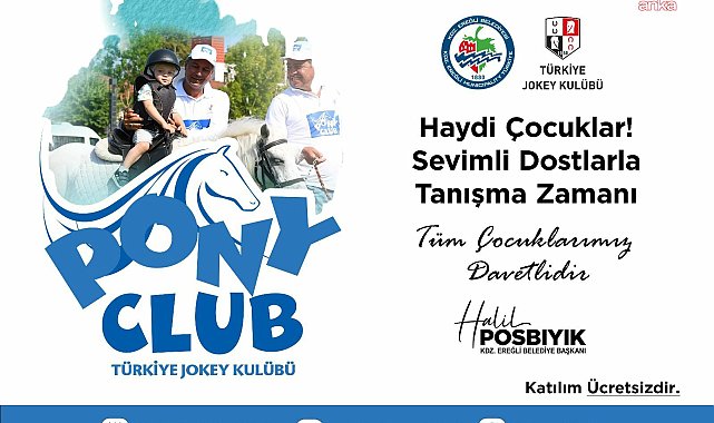(ZONGULDAK)- Karadeniz Ereğli Belediyesi ile Türkiye Jokey Kulübü (TJK) iş birliğiyle düzenlenen "Pony Club Şehrinize Geliyor" etkinliği, 1-2 Eylül 2025 tarihlerinde gerçekleştirilecek.Karadeniz Ereğli Belediyesi ve Türkiye Jokey Kulübü (TJK) iş birliği ile çocuklara at sevgisini aşılamak amacıyla düzenlenen "Pony Club Şehrinize Geliyor Etkinliği" 1-2 Eylül 2025 tarihlerinde gerçekleşecek. 2014 yılından bu yana Türkiye’nin her köşesinde çocukları pony atlarla buluşturan Türkiye Jokey Kulübü (TJK), 1-2 Eylül 2025 tarihlerinde düzenleyeceği etkinlik ile Karadeniz Ereğli'de çocuklara iki gün boyunca atları yakından görme ve gezinti fırsatı sunacak.Etkinlik, 1 Eylül Pazartesi ve 2 Eylül Salı günleri 16.00 ile 20.00 saatleri arasında Ofis yolunda ücretsiz olarak gerçekleştirilecek.