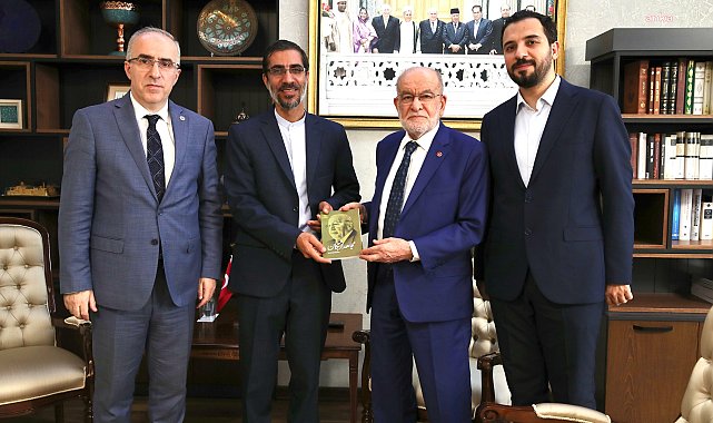 (ANKARA) - Saadet Partisi Genel Başkanı Temel Karamollaoğlu, İran İmam Bakır Enstitüsü Rektörü Seyyid Ali Musevi ve “Mücahit Erbakan” kitabının yazarı Mesut Sadr'ı kabul etti.Saadet Partisi lideri Karamollaoğlu, İran İmam Bakır Enstitüsü Rektörü Seyyid Ali Musevi ve yazar Mesut Sadr ile bir araya geldi. Ziyarette, Saadet Partisi Genel Başkan Yardımcısı ve İstanbul Milletvekili Mustafa Kaya da hazır bulundu.Ziyaretten duyduğu memnuniyet dile getiren Karamollaoğlu, “‘Mücahit Erbakan’ kitabı Milli Görüş hareketimizin merhum lideri Erbakan Hoca’mızın başta İran’da ve İslam dünyasında daha iyi tanınmasına vesile olmasını dileriz” dedi. Ziyarette, iki ülkenin ortak noktaları çoğaltacak yaklaşım içerisinde olması gerektiğine dikkati çeken Karamollaoğlu, eğitim ve kültürel alanın bunun en kolay yollarından birisi olduğunu vurguladı.