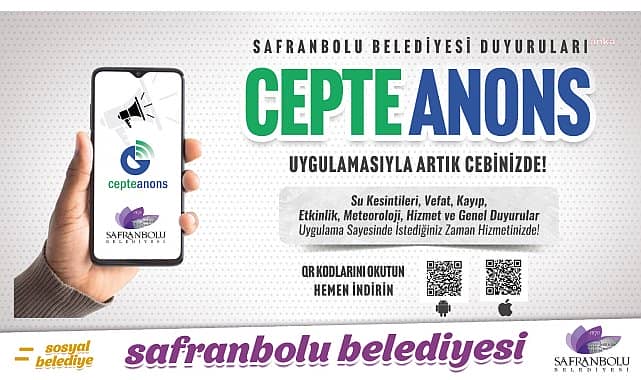 Safranbolu Belediyesi’nin, tüm duyuruları vatandaşların cep telefonlarına taşıdığı cepte anons uygulamasına ilk haftadan yoğun ilgi oldu. Uygulamanın devreye girmesiyle vatandaşların Safranbolu Belediyesi’nden yapılan duyurulara ulaşabildiği cepte anons uygulamasını, binlerce kişi cep telefonlarına indirdi.Safranbolu halkının, hoparlörlerden yapılan duyurular ile gürültü kirliliğine maruz kalmaması adına Safranbolu Belediyesi tarafından alınarak faaliyete konulan cepte anons uygulamasına ilgi katlanarak artıyor. Vefat, kayıp, su kesintisi, elektrik kesintisi, etkinlik, meteoroloji, hizmet ve genel duyuruları cep telefonlarından takip etmek isteyen binlerce vatandaş daha ilk haftadan, Google Play ve App Store üzerinden ‘cepte anons’ uygulamasını telefonlarına indirdi.CEPTE ANONS UYGULAMASI 7 GÜN 24 SAAT BİR TIK UZAĞINIZDACepte anons uygulamasını telefonlarına indiren vatandaşlar uygulamaya giriş yaparak Safranbolu Belediyesi’ni seçtikten sonra, vefat, kayıp, su kesintisi, elektrik kesintisi, etkinlik, meteoroloji, hizmet ve genel duyurulara erişebiliyor. Cepte anons uygulaması aynı zamanda hayat kurtaran bir uygulama olarak da ön plana çıkıyor. İçerisinde yer alan düdük sesi ve flaşlı SOS uyarısı ile olası bir depremde göçük altında kalan ya da herhangi bir afet durumunda zor durumda olan vatandaşlara ulaşmakta ekiplere kolaylık sağlıyor.