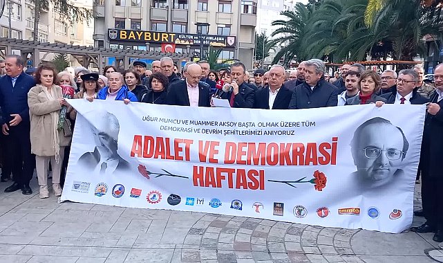"Bağımsızlık, özgürlük ve demokrasi mücadelesinin saygın isimleri olan değerli gazeteci- yazar Uğur Mumcu ile Atatürkçü Düşünce Derneği'nin kurucu Genel Başkanı, seçkin hukuk bilgini Prof. Dr. Muammer Aksoy'un alçakça pusular kurdurularak öldürülüşlerinin yıl dönümü günleri olan 24- 31 Ocak tarihleri arasını, "Adalet ve Demokrasi Haftası" olarak anıyoruz. Kurucu Önderimiz Atatürk’ün ölümünün ardından devrim karşıtı sürecin başlamasıyla birlikte Cumhuriyetin temel niteliklerine, Atatürk ilke ve devrimlerine yönelik her türlü saldırı giderek artmış ve gelinen durum doruk noktasına ulaşmıştır. Cahil bırakılmış halkın, dinsel inançlarını sömüren tarikat ve cemaatlerin giderek güçlendiği, emperyalizmin Büyük Orta Doğu Projesi hedefiyle girişilen ülkelerin bölünüş müzakerelerinde hayli mesafe katledildiği, komşu ülkelerle savaşın eşiğine gelindiği, iç huzurun ve toplumsal barışın büyük yara aldığı, ekonominin küresel sermayeye tek taraflı bağlandığı, eğitimin çağdaş ve bilimsellikten hızla uzaklaştırıldığı bir ortamda; Uğur Mumcuları, Muammer Aksoyları ve onlarca devrim şehidimizi her zamankinden daha fazla arıyor, özlüyoruz.