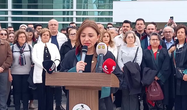 Samsun Barosu avukatları, Samsun Akademik Odalar Birlikteliği'nin katılımıyla İstanbul Barosu yönetimi hakkında verilen karara tepki göstererek Adalet Sarayı önünde basın açıklaması yaptı. Baro Başkanı Pınar Gürsel Yıldıran, şunları söyledi: