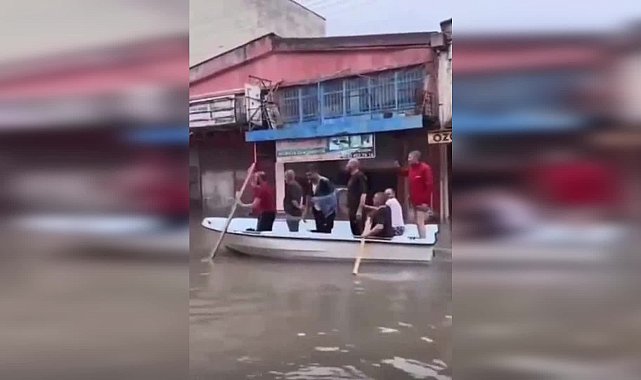 Samsun’un İlkadım, Canik ve Atakum ilçelerinde yoğun yağış ve sel nedeniyle okullar bir gün tatil edildi. Selin vurduğu Gülsan Sanayi Sitesi esnafı, ulaşımı tekne ve şişme botlarla sağlıyor.Samsun’da valilik kararıyla yoğun yağmur nedeniyle önlem olarak Atakum, Canik, İlkadım’da okullar tatil edildi. Yoğun yağmur nedeniyle Canik ilçesinde bulunan Gülsan Sanayi Sitesi’ni sel bastı. İş yerleri tamamen sular altında kaldı. Gülsan Sanayi Sitesi esnafları ulaşımlarını kendilerinin bulduğu tekne ve şişme botlarla sanayi içerisinde komşularına ve sanayi esnafına destek olmaya çalıştı."SON BİR HAFTADA İKİNCİ SEL VAKASI"Gülsan Sanayi Sitesi esnaflarından Gökhan Kobal yaşadıklarını şöyle anlattı:"Samsun’da ikinci seli yaşayışımız. Altyapı mı yok, ne yok bilmiyoruz. Yağmur çok yağdı, tamam çok yağdı, yarım saat yağmurda bütün sanayideki dükkanları su bastı. Son bir haftada ikinci sel vakası... Birinci sel vakasında Gülsan Sanayi sitesi, eski sanayi sitesinin yarısı tamamıyla su altında kalmıştı. Dükkanlara su basmıştı, çamur basmıştı. Onları temizledik, zararı ziyanı hesaplamaya çalışırken, bu sabah saat 5 gibi ikinci yağmur yarım saat kadar yağdı. Bu sabah da yağdı. Tamam fazla yağdı ama altyapımız mı eksik? Suyu neden tahliye demiyoruz? Bunun çözümünü bilmiyoruz. Aşağı yukarı bir metreye kadar, bunun altında çamur, bu çamurların temizlenmesi, ıslanan mallar."Bir diğer Gülsan Sanayi Sitesi esnafı Mehmetcan Duralı ise, "Denize 200 metre yakınlıktayız. Buna rağmen dışarıya su atamıyoruz" dedi.Reklam