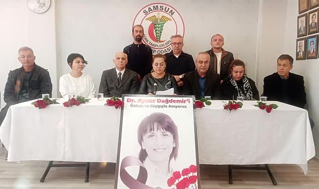 Samsun Tabip Odası Kadın Hekim Kolu, 8 yıl önce 19 Kasım 2015 tarihinde görevi başındayken katledilen meslektaşları Opr. Dr. Aynur Dağdemir’i önce mezarı başında andı. Anmanın ardından Samsun Tabip Odası Kadın Hekim Kolu adına Dr. Sema Aydoğdu, basın açıklamasını okudu. Aydoğdu, şunları söyledi: