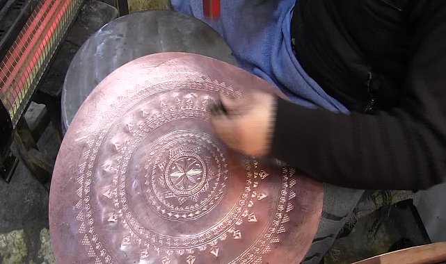 (ŞANLIURFA) - Şanlıurfa’nın tarihi çarşısında baba mesleğini yaşatmaya çalışan bakır ustası Mehmet Nur Demirözü, bakırda geleneksel mutfak eşyalarının yerini süs eşyalarına bıraktığını söyledi. Demirözü, "Gerçek manada mutfak eşyası yapan sanatkâr kalmadı. Bu çarşıda gördükleriniz hazır eşyalar, dışarıdan geliyor. 1980’den önce tüm evlerde bakır tencere, bakır tava, bakır aş kazanı, bakır çiğ köfte leğeni, bakır yemek tabakları kullanıldı" dedi.