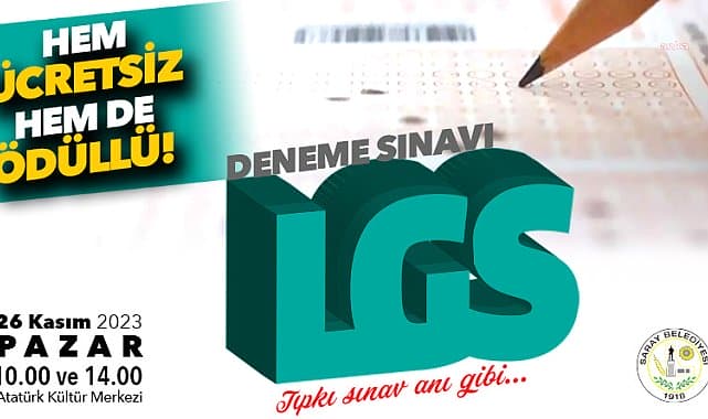 Saray Belediyesi, eğitimde fırsat eşitliğine yönelik çalışmaları kapsamında ücretsiz deneme sınavlarına devam ediyor. Saray Belediyesi, Liselere Geçis Sistemi sınavına katılacak öğrenciler için 26 Kasım Pazar günü Atatürk Kültür Merkezi’nde ücretsiz LGS Deneme Sınavı düzenleyecek.Saray Belediyesi, Liselere Geçiş Sistemi (LGS)sınavına katılacak öğrenciler için 26 Kasım Pazar günü 10.00 ve 14.00 saatlerinde 2 oturum olmak üzere Atatürk Kültür Merkezi’nde ücretsiz LGS Deneme Sınavı yapacak. Konuyla ilgili Saray Belediyesi’nden yapılan açıklamada, “LGS'ye katılacak değerli öğrencilerimiz; Saray Belediyesi sizlere sınav anını yaşatacak ücretsiz deneme sınavı imkanı sunuyor. Sınavda başarıyı yakalamak için sizleri bu deneyime davet ediyoruz. Sınavda dereceye girecek olanlara çok değerli kitaplar armağan edeceğimizi müjdeliyoruz. Başvurular Atatürk Kültür Merkezi’nde yüz yüze yapılacaktır. Sınava katılacakların sadece kurşun kalem ve silgi getirmesi yeterlidir. Kontenjan 200 kişi ile sınırlıdır” ifadelerine yer verildi.
