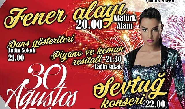 Saray Belediyesi, 30 Ağustos Zafer Bayramı’nın 101. yıl dönümünü gün boyunca düzenleyeceği etkinliklerle kutlayacak.30 Ağustos Çarşamba günü saat 20.00’de Atatürk Alanı’ndan başlayacak olan fener alayı sonrası kutlamalar, Ladin Sokak’ta dans gösterileri, piyano ve keman resitali ile devam edecek. Binlerin ellerinde meşale ve Türk bayraklarıyla gerçekleştireceği fener alayının ardından bayram coşkusu Sevtuğ konseriyle taçlanacak.SARAY BELEDİYESİ’NDEN 30 AĞUSTOS’A DAVET