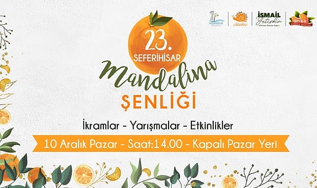 Seferihisar’ın köklü geleneklerinden biri olan Mandalina Şenliği’nin, bu yıl 23’üncüsü düzenleniyor. Seferihisar Belediyesi tarafından düzenlenecek şenlikte, birbirinden eğlenceli etkinliklere, dans gösterilerine, ikramlara ve yarışmalara yer verilecek.