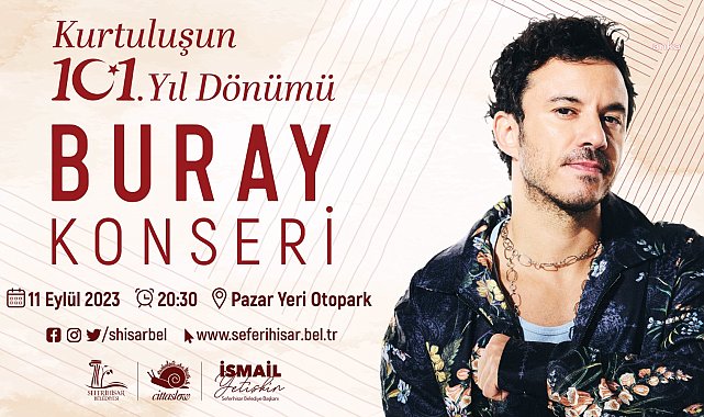 Seferihisar Belediyesi, ilçenin 101. kurtuluş yıl dönümünü coşkuyla kutlamaya hazırlanıyor. Ünlü şarkıcı Buray’ın sahne alacağı kurtuluş günü kutlamalarında, belediye bandosu ve Zeynep İde konseriyle coşku doruğa çıkacak.
