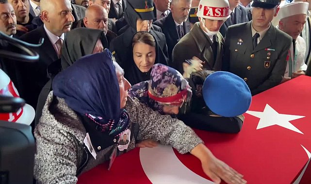 Cenaze töreni sırasında silah arkadaşının, şehidin tabutuna sarılarak gözyaşlarına hakim olamadığı dikkati çekti.