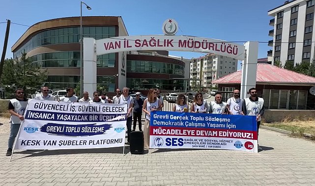 Sağlık ve Sosyal Hizmet Emekçileri Sendikası (SES) ile KESK Van Şubeler Platformu bileşenleri, 8. Dönem Toplu İş Sözleşmesi süreci öncesi Van İl Sağlık Müdürlüğü önünde basın açıklaması yaptı. Açıklamada, sağlık emekçilerinin yaşadığı ekonomik ve sosyal sorunlar ile talepleri kamuoyuyla paylaşıldı.