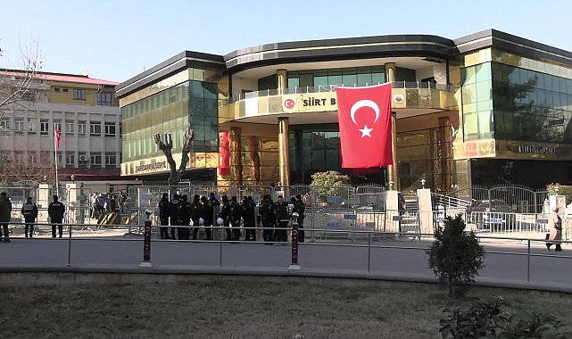 Haber: Ahmet ÜN / Kamera: İsmet MİKAİLOĞULLARI(SİİRT) - DEM Partili Siirt Belediye Eş Başkanı Sofya Alağaş’ın görevden alınarak yerine Vali Kemal Kızılkaya’nın kayyum olarak atanması, DEM Parti Eş Genel Başkanı Tuncer Bakırhan’ın katılımıyla protesto edilecek.Diyarbakır 5. Ağır Ceza Mahkemesi’nce "PKK/KCK silahlı terör örgütüne üye olmak" suçundan 6 yıl 3 ay hapis cezasına çarpıtılan Siirt Belediyesi Eş Başkanı DEM Parti Sofya Alağaş, İçişleri Bakanlığı tarafından görevden alınarak yerine Siirt Valisi Kemal Kızılkaya, Belediye Başkan Vekili olarak görevlendirildi.Sabah saatlerinde Siirt Belediyesi önüne gelen polis ekipleri, belediye binasını bariyerler kapattı. Belediye önünde kalabalık bir grupla bir araya gelen DEM Parti Siirt İl Eş Başkanı Eşref Tekin, saat 15.00’da DEM Parti Eş Genel Başkanı Tuncer Bakırhan’ın kente geleceğini belirterek, protesto eylemi düzenleneceğini bildirdi.Yoğun güvenlik önlemlerinin alındığı Siirt Belediyesi önünde bir grubun bekleyişi sürüyor.