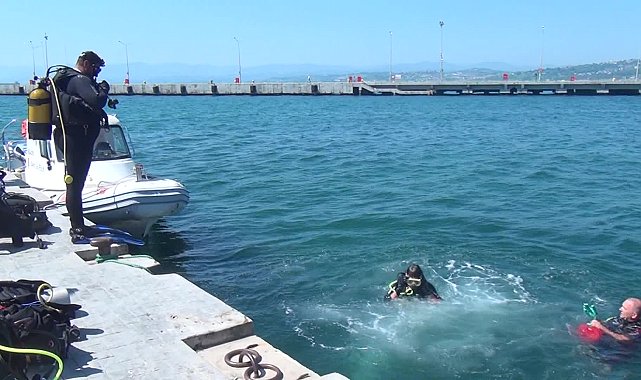 (SİNOP) - Sinop’ta liman içinde 20 dalgıç tarafından deniz dibi temizliği yapıldı. Eğitmenler ve öğrenciler denizden çuvallar dolusu çöp çıkardı.