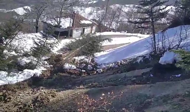 Sinop’un merkeze bağlı Çakıldak köyü Gedi Mahallesi’nde karların erimesiyle birlikte yumuşayan toprak heyelana neden oldu. Yüksek yamaçtan kopan toprak parçası ağaçları devirdi, köy yolunu ulaşıma kapadı.
