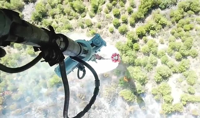 (MANİSA) - Manisa'nın Soma ilçesindeki orman yangınına havadan ve karadan müdahale ediliyor.Manisa ili Soma İlçesi Bayat Mahallesinde ormanlık alanda henüz belirlenemeyen bir nedenle saat 14.33’te yangın çıktı. İhbar üzerine yangına ilk müdahale 14.43’te yapıldı.Yangını kontrol altına almak için İzmir Orman Bölge Müdürlüğüne ait 2 uçak, 4 helikopter, 17 arazöz, 4 su ikmal, 1 dozer ile havadan ve karadan müdahale devam ediyor.