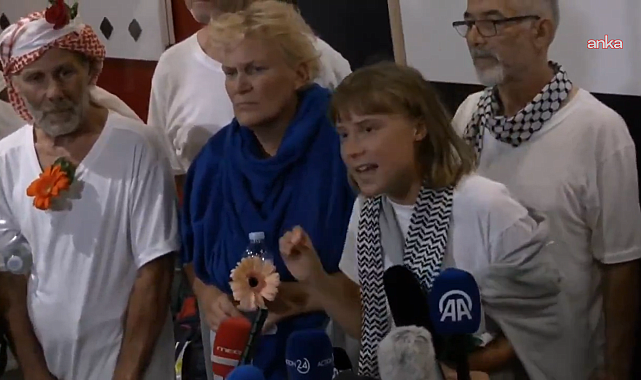 (ANKARA) - Gazze’ye insani yardım ulaştırmak amacıyla yola çıkan ve İsrail ordusunca engellenen Küresel Sumud Filosu'nda alıkonulan aktivistlerin bir kısmı Yunanistan'a ulaştı. İsveçli iklim aktivisti Greta Thunberg'in de arasında bulunduğu aktivistler, Atina'daki Eleftherios Venizelos Havalimanı'nda “Özgür Filistin” sloganları ile karşılandı.Küresel Sumud Filosu organizatörü ve iklim aktivisti Greta Thunberg, uçaktan indikten sonra basın açıklaması yaptı. Thunberg, "herkesin gözünün önünde Gazze'de bir soykırım yapıldığını" ifade ederek, "uluslararası toplumun ve hükümetlerin İsrail'in işlediği savaş suçlarını engellemek adına en ufak bir adım atmadıklarını" söyledi.Küresel Sumud Filosu'nun büyük ve küresel çapta bir dayanışma hikayesi olduğunun altını çizen Thunberg, "Hükümetler yapamadı, halk devreye girdi. Sözde bizi temsil eden liderler soykırım, ölüm ve yıkımı desteklemeye devam ediyor. Onlar beni, bizi temsil etmiyorlar" dedi."Konu İsrail’in Gazze’de devam ettirdiği soykırım"Greta Thunberg, "gözlerin Gazze'den ayrılmaması gerektiğini" ifade ederek, "İnanın, uzunca bir süre İsrail'in hapishanede yaptığı kötü muamele ve istismarlardan bahsedebilirim ama konu bu değil. Konu, İsrail'in Gazze'de devam ettirdiği soykırım. Gözlerimizin önünde bir milleti yok etmeye çalışıyorlar" diye konuştu.Atina'ya gelen diğer aktivistler de İsrail'de maruz kaldıkları şiddetin "Filistin halkının çektiği acıların yanında bir hiç" olduğunu ifade etti.