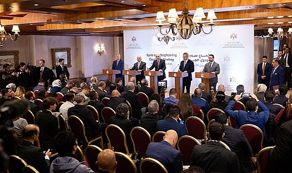 (ANKARA) - Ürdün'ün başkenti Amman’da düzenlenen "Suriye ve Komşu Ülkeler Toplantısı"nın ardından yayımlanan 11 maddelik sonuç bildirisinde, Suriye’nin güvenliği, istikrarı, egemenliği ve toprak bütünlüğünü sağlama çabalarına destek verileceği, İsrail’in saldırganlıklarının kınanacağı, DEAŞ’la mücadele için ortak operasyon merkezi kurulacağı ve Suriye’nin yeniden inşası için uluslararası desteğin artırılacağı ifade edildi. Suriye ve komşu ülkeler arasında ekonomik iş birliği ve mültecilerin güvenli geri dönüşü için gerekli koşulların sağlanması gerektiği vurgulanırken Suriye’ye yönelik yaptırımların kaldırılması ve Türkiye’de ikinci bir toplantı düzenlenmesi kararlaştırıldı.Türkiye, Irak, Ürdün, Lübnan ve Suriye dışişleri bakanları, savunma bakanları, genelkurmay başkanları ve istihbarat servisleri başkanları Amman’da düzenlenen "Suriye ve Komşu Ülkeler Toplantısı"da bir araya geldi. Toplantının ardından 11 maddelik "Suriye ve Komşu Ülkeler Toplantısı Sonuç Bildirisi" yayımlandı. Sonuç bildirisinde şu ifadeler yer aldı: "Suriye halkının, ülkenin güvenliğini, istikrarını, egemenliğini ve toprak bütünlüğünü sağlamak amacıyla yeniden inşa çabalarında desteklenmesi gerektiği vurgulanmıştır. Suriye'nin güvenliğinin ve istikrarının bölge için kritik olduğu ve Suriye hükümetine destek verilmesi gerektiği ifade edilmiştir. İsrail’in Suriye topraklarına yönelik saldırganlıkları kınanmış ve uluslararası hukukun uygulanması için BM Güvenlik Konseyi'ne çağrı yapılmıştır. Suriye Ulusal Diyalog Konferansı’nın sonuçları memnuniyetle karşılanmış ve Suriyelilerin anayasal bildiriyi yayınlaması teşvik edilmiştir. Terörizmin her türü kınanmış ve DEAŞ ile mücadele için ortak operasyon merkezi kurulması kararlaştırılmıştır. Uyuşturucu, silah kaçakçılığı ve organize suçlarla mücadele için işbirliği yapılması gerektiği belirtilmiştir. Suriye’nin yeniden imarına yönelik çabalara destek verilmesi ve uluslararası desteğin artırılması gerektiği ifade edilmiştir. Suriye’ye yönelik yaptırımların kaldırılması ve ülkenin yeniden inşa kapasitesinin artırılması gerektiği vurgulanmıştır. Suriye ve komşu ülkeler arasında ekonomik işbirliğinin artırılması ve altyapı projelerinin desteklenmesi gerektiği ifade edilmiştir. Suriyeli mültecilerin güvenli ve sürdürülebilir bir şekilde geri dönüşü için gerekli koşulların sağlanması gerektiği vurgulanmıştır. Görüşmelerin devamı ve alınacak kararlar için Türkiye’de ikinci bir toplantı düzenlenmesi kararlaştırılmıştır."