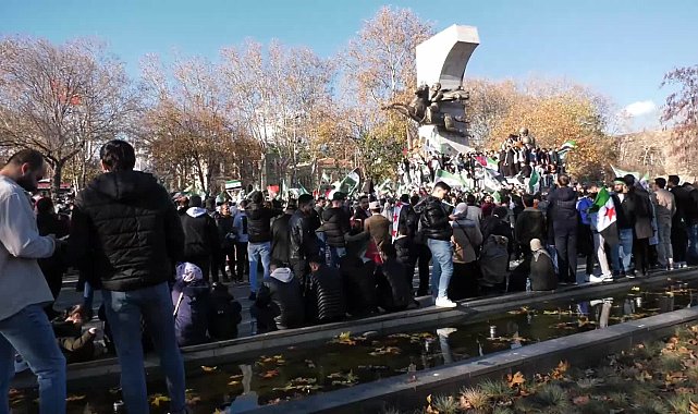 Haber: Hakan KAYA/Kamera: Onur DURSUN(İSTANBUL)- İstanbul’da yaşayan Suriyeliler, Suriye'de El Kaide bağlantılı Heyet Tahrir eş-Şam (HTŞ) terör örgütü öncülüğündeki silahlı grupların Beşar Esad yönetimini devirmesini gün boyu kutladı. Fatih Camisi’nde başlayan kutlamaların uzun sürmesine polis izin vermedi, kutlamalar Saraçhane'de devam etti. Nişantaşı'ndaki konsolosluk binasına da muhalifler, "Özgür Suriye" bayrağı astı.Türkiye başta olmak üzere dünyada çok sayıda ülkenin terör örgütü olarak tanıdığı HTŞ örgütünün öncülüğündeki silahlı grupların Şam'da Beşar Esad rejimini devirmesi en çok Suriyeli sığınmacının yaşandığı İstanbul'da bazı semtlerde kutlandı. Kutlamalar Başakşehir'de dün gece, Fatih Cami ve çevresinde sabah namazı saatlerinde başladı. Esenyurt gibi yoğun Suriyeli sığınmacının olduğu semtlerde de kutlamalar yapıldı. Suriye Konsolosluğu'nun bulunduğu Nişantaşı'nda muhalifler konsolosluk binasında bayrağı indirerek, 'Özgür Suriye' yazılı bayrak astı. Caddede toplananlar, sloganlarla sevinç gösterisinde bulundu.Çocuğunu havaya atarak kutlamalara katıldıPolis, Fatih Camisi’nde toplanan gruplara bir süre sonra Saraçhane'yi adres gösterdi. Fatih Anıtı önünde toplanan Suriyeliler, sloganlarla Esad rejiminin yıkılmasını kutladı. Kalabalıktan bir kişi çocuğunu defalarca havaya atarak kutlamaya katıldı. Kutlama gün boyunca sürdü.