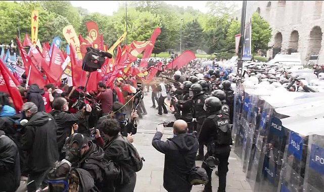 Haber: ÇAĞATAN AKYOL - Kamera: UMUT EMRE GÖKBULUT(İSTANBUL) - İstanbul’da 1 Mayıs İşçi Bayramı dolayısıyla Taksim Meydanı’na gitmek üzere Saraçhane’de toplananlara polis sert müdahale etti. Bozdoğan Kemerleri önünde TOMA'larla bekleyen çevik kuvvet ekipleri, barikatı zorlayanlara karşı biber gazı ve plastik mermi kullandı. Müdahale öncesinde DİSK Başkanı Arzu Çerkezoğlu, polis amirine kitlenin coşkusunu dile getirerek, barikatların açılmasını iletti. İzin verilmemesi üzerine tertip komitesi, programı sonlandırıp alandan çekilme kararı aldı.Anayasa Mahkemesi’nin ''hak ihlali'' kararına karşın 1 Mayıs İşçi Bayramı’nda Taksim Meydanı, İstanbul Valiliği tarafından bu yıl da yasaklandı. Emekçiler, DİSK, KESK, TMMOB, Türk Tabipleri Birliği (TTB) ile Türk Dişhekimleri Birliği’nin (TDB) çağrısıyla Taksim’e gitmek üzere Saraçhane’de toplandı. CHP Genel Başkanı Özgür Özel, DEM Parti Eş Genel Başkanı Tuncer Bakırhan, Türkiye İşçi Partisi Genel Başkanı Erkan Baş, Emek Partisi Genel Başkanı Seyit Aslan, İstanbul Büyükşehir Belediye Başkanı Ekrem İmamoğlu, CHP İstanbul İl Başkanı Özgür Çelik ve çok sayıda siyasi parti temsilcisi de Saraçhane’deki buluşmaya katıldı.Günün ilk saatlerinden itibaren kentteki toplu ulaşımda büyük kısıtlamalar başladı. Tarihi Bozdoğan Kemerleri önünde TOMA'larla çok sayıda çevik kuvvet ekibinin beklemesi de tepki yarattı. İBB binası önünde gazetecilere açıklama yapan Özgür Özel, daha sonra aracıyla alandan ayrıldı. DİSK Genel Başkanı Arzu Çerkezoğlu da Taksim’e gitmek üzere bir polis amirinden barikatların kaldırılmasını istedi. Gerekçelerini anlatan polis ise Saraçhane’den geçişe izin verilmeyeceğini bildirdi. Daha sonra tertip komitesi toplandı. DİSK İstanbul Bölge Temsilcisi Asalettin Arslanoğlu, otobüs üzerinden yaptığı konuşmada, etkinliği sonlandırdıklarını açıkladı. Alanda toplananlardan bazıları karara tepki gösterdi.Bu sırada diğer bazı siyasi parti temsilcileri ve sivil toplum örgütleri, engeli aşmak üzere barikatı zorladı. Kalkanlarla müdahale eden çevik kuvvet ekipleri, biber gazı ve plastik mermi kullandı. Çok sayıda emekci gazdan etkilendi, yaralanlar oldu, bazı kişiler baygınlık geçirdi.Bununla da yetinmeyen polis aşama aşama barikatı genişleterek Saraçhane'de toplananları Aksaray'a kadar uzaklaştırdı.