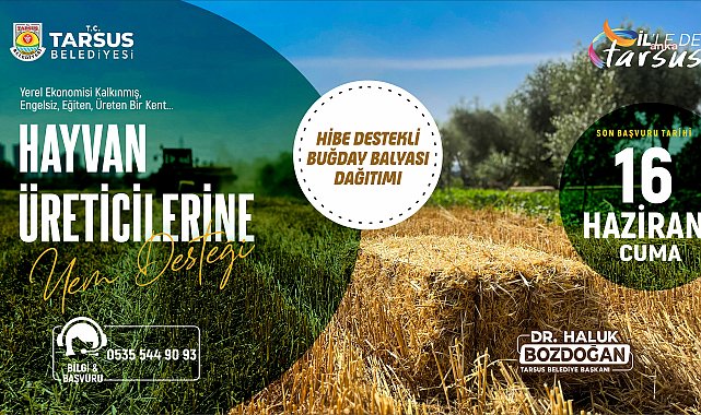 Tarsus Belediyesi, tarım ve hayvancılığı geliştirmeye yönelik başlattığı ‘Hayvan Üreticilerine Yem Desteği’ projesi kapsamında besicilere hibe olarak buğday balyası dağıtacak. Tarsus Belediyesi hayvancılıkla uğraşan vatandaşların yem ihtiyaçlarını gidermek, yerli üretimi artırmak, kırsal kalkınmayı geliştirmek ve artan maliyetler karşısında üreticileri desteklemek amacıyla Hayvan Üreticilerine Yem Desteği’ni yaşama geçirdi. Proje kapsamında besicilere hibe destekli buğday balyası dağıtılacak. Hizmetten faydalanmak isteyen vatandaşlar, 0535 544 90 93 numaralı hatta ulaşarak kayıt olabilecek. Son başvuru tarihi ise 16 Haziran 2023 olarak belirlendi.