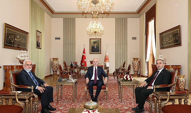 (ANKARA) - TBMM Başkanı Numan Kurtulmuş, HÜDA PAR Genel Başkanı Zekeriya Yapıcıoğlu'nu kabul etti.Kurtulmuş, HÜDA PAR Genel Başkanı Zekeriya Yapıcıoğlu ve Gaziantep Milletvekili Şahzade Demir'i kabul etti. Yapıcıoğlu, görüşmeye ilişkin sosyal medya hesabından yaptığı paylaşımda, "TBMM Başkanlığına yeniden seçilmesi münasebetiyle Sayın Numan Kurtulmuş’u ziyaret ederek hayırlı olsun dileklerimizi ilettik. Sayın Meclis Başkanımıza hayırlı ve güzel hizmetlerde bulunması temennisiyle başarılar diler, misafirperverlikleri için teşekkür ederim." ifadelerini kullandı.