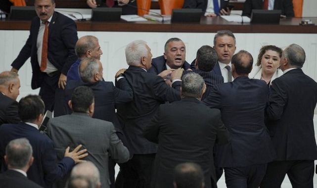(TBMM)- TBMM Genel Kurulu'nda, vergi kanun teklifinin görüşmelerinde ikinci kez gerginlik yaşandı. İYİ Parti Bursa Milletvekili Selçuk Türkoğlu, Cumhur İttifakı’na yönelik eleştirilerde bulundu. Bunun üzerine AK Parti'li ve MHP'li milletvekilleri Türkoğlu'na sert tepki gösterdi. MHP Grup Başkanvekili Erkan Akçay ile İYİ Parti Bursa Milletvekili Selçuk Türkoğlu arasında arbede yaşandı. Meclis Başkanvekili Bekir Bozdağ Genel Kurul'u kapattı. TBMM Genel Kurulu'nda, Vergi Kanunları ile Bazı Kanunlarda Değişiklik Yapılmasına Dair Kanun Teklifi'nin yedinci madde üzerindeki görüşmeleri sırasında İYİ Parti Bursa Milletvekili Yüksel Selçuk Türkoğlu, partisinin önergesi üzeri konuştu.Türkoğlu, "Milletin ümüğüne adeta sazan sarmalı yönetimiyle çöktüğünüz için bugünlerde ilahi adalet sizi adeta tokat manyağına çevirdi. İkide bir tükürdüğünüzü yalamak zorunda kalıyorsunuz. İlahi adalet önce nas var nas diyip sonra dünyanın faiz rekoru kıran iki ülkesinden biri olmanın sahibi yaptı sizi... İlahi adalet 'hırsız' dediğinize hazineyi, 'zürriyetsiz' dediğinize ittifakı teslim etmeniz. 'Aptal olma' diyerek skandal bir mektupla tehdit edene de bin yıllık Türk devletinin onurunu çiğnetmenizdir. En kötüsü de gerçek adalete rahmet okutan firavunun adaletsizliğinden medet ummaya mahkum edilmenizdir" diye konuştu.Selçuk Türkoğlu'nun konuşmasının ardından İYİ Parti'nin önergesi AKP ve MHP milletvekillerinin oylarıyla reddedildi. Türkoğlu, AKP sıralarına dönerek önergenin reddedilmesine ilişkin, "Her defasında aynı şeyi yapıyorsunuz" diyerek tepki gösterdi. Bunun üzerine Meclis Başkanvekili Bekir Bozdağ Genel Kurul'a 15 dakika ara verdi.Arbade yaşandıTürkoğlu yerine geçtiği sırada, MHP Grup Başkanvekili Erkan Akçay ile arasında tartışma yaşandı.başlayan tartışma arbedeye dönüştü. Bunun üzerine muhalefet milletvekilleri ve iktidar milletvekilleri arbedeyi ayırmaya çalıştı. Türkoğlu bazı milletvekilleri tarafından Genel Kurul salonundan çıkarıldı.Meclis Başkanvekili Bozdağ, tüm partilerin grup başkanvekilleriyle görüşme yaptı.Aranın ardından Türkoğlu Genel Kurul'a girdi, MHP'li Akçay arasında tekrar tartışma yaşandı. Bazı MHP'li milletvekillerinin Türkoğlu'nun üzerine yürüdüğü görülürken, Türkoğlu, araya giren milletvekilleri tarafından Genel Kurul'dan çıkarıldı.Türkoğlu'na "uyarma cezası" Genel Kurul bu sırada çalışmasına başlayamadı. Bekir Bozdağ, Türkoğlu’na içtüzük gereği sükuneti ve çalışma düzenini bozduğu gerekçesiyle "uyarma cezası" verdi. Bozdağ, komisyonun yerinde olmaması nedeniyle birleşimi saat 14.00'te toplanmak üzere kapattı.Genel Kurul'da görüşülen vergi kanun teklifinin 7 maddesi kabul edildi.