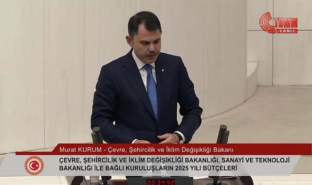 TBMM Genel Kurulu'nda Çevre, Şehircilik ve İklim Değişikliği Bakanlığı ile Sanayi ve Teknoloji Bakanlığı'nın 2025 yılı bütçe görüşmeleri devam ediyor. Yürütme adına konuşma yapan Çevre, Şehircilik ve İklim Değişikliği Bakanı Murat Kurum'un konuşmasında öne çıkanlar şöyle:
