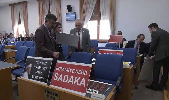 CHP'li milletvekilleri masalarına koydukları "1 kg baklava 750 lira", "Emeklinin hakkı fitre değil", "Zam bin lira, bozdur bozdur harca" yazılı dövizlerle emekli bayram ikramiyesinin düşük miktarda artışına tepki gösterdi.