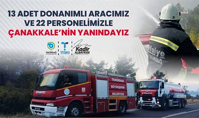Tekirdağ Büyükşehir Belediyesi, Çanakkale’de devam orman yangınına müdahale çalışmalarına destek vermek amacıyla çok sayıda araç ve personelini yangın bölgesine gönderdi. Çanakkale’de meydana gelen orman yangınına müdahale eden itfaiye ekiplerine destek vermek üzere hazırlanan Tekirdağ İtfaiyesi yangın bölgesine ulaştı. Tekirdağ Büyükşehir Belediyesi; 1 arazöz, 9 su tankeri, 1 dozer, 1 çekici ve 1 öncü araç olmak üzere toplam 13 araç ile 22 personelini Çanakkale’ye gönderdi. Ekiplerin büyük bir özveri ve fedakârlık ile orman yangınları ile mücadele ettiğini belirten Tekirdağ Büyükşehir Belediye Başkanı Kadir Albayrak, şunları söyledi:“Tekirdağ Büyükşehir Belediyesi olarak araçlarımız ve ekiplerimizle birlikte Çanakkale’deki yangın söndürme çalışmalarına destek oluyoruz. Elimizden geldiğince imkanlarımızı yangın bölgesi için seferber etmiş durumdayız. Tekirdağ Büyükşehir Belediyesi olarak yangından zarar gören tüm vatandaşlarımızın yanındayız. Birlik ve dayanışma ile yaraları hep birlikte saracağız. Zarar gören vatandaşlarımıza geçmiş olsun diyor, yangınla mücadele eden tüm ekiplerimize de kolaylıklar diliyorum. Biran önce tüm yangının kontrol altına alınması en büyük temennimiz.”