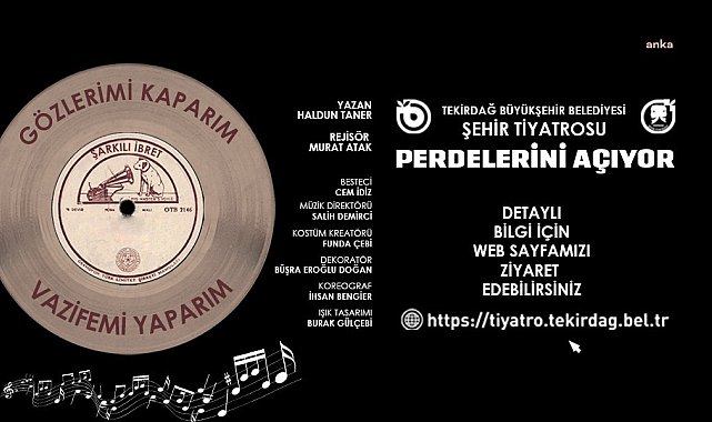 Tekirdağ Büyükşehir Belediyesi tarafından kente kazandırılan Şehir Tiyatroları, 7 Mayıs 2023 Pazar Günü saat 18.00’de sahneleyeceği ‘Gözlerimi Kaparım Vazifemi Yaparım’ adlı tiyatro oyunu ile perdelerini açacak.Cumhuriyet ilkeleri ışığında şehrin kültürel yapısına katkı sağlamak, tiyatro sanatını yaygınlaştırmak ve evrensel değerlere sahip bireylerin yetiştirilmesine katkıda bulunmak amacıyla Tekirdağ Büyükşehir Belediyesi tarafından hayata geçirilen Şehir Tiyatroları, Haldun Taner’in yazdığı ‘Gözlerimi Kaparım Vazifemi Yaparım’ ile izleyicilerin karşısına çıkacak. Cumhuriyet’in 100. yılında önemli bir projeyi daha hayata geçirmenin haklı gururunu yaşadıklarını belirten Tekirdağ Büyükşehir Belediye Başkanı Kadir Albayrak, şunları söyledi:“Cumhuriyet’imizin 100. yılını kutlayacağımız 2023 yılı içerisinde bir büyük hizmeti daha vatandaşlarımızın hizmetine sunuyoruz. Tüm sanat dallarını kapsamaya çalışan, bireysel ve toplumsal değerleri temel alan özgün sanat eserleri üretmek üzere her zaman güzeli ve iyiyi aramak için yola çıkan ve her durumda köklerinden beslenip evrensele ulaşmak için devamlı gelişmeyi amaçlayan bir sanat kurumu olmasını hedeflediğimiz Şehir Tiyatrolarımız ilk oyunuyla Tekirdağlı sanatseverlerin karşısına çıkmaya hazırlanıyor. Ulu Önder'imiz Mustafa Kemal Atatürk’ün ‘Milletimizin güzel sanatlar sevgisini, her türlü vasıta ve tedbirlerle besleyerek yükseltmek milli ülkümüzdür’ sözünden hareketle, tiyatro sanatçılarımızın, Ata’mızın bu sözünü gerçekleştireceklerine yürekten inanıyor, Şehir Tiyatrolarımızın ilk oyunu olan ‘Gözlerimi Kaparım Vazifemi Yaparım’ adlı tiyatro oyununa tüm sanatseverlerimizi bekliyoruz. Yönetmenimize, tasarım ekibimize ve oyunumuzun sahnelenmesinde emeği geçen Büyükşehir Belediyesi çalışanlarımıza teşekkür ederim. Tekirdağ’da Cumhuriyet tarihinin ilk Şehir Tiyatroları’nın kentimize hayırlı olmasını diliyorum.”Tekirdağ Büyükşehir Belediyesi Şehir Tiyatroları’nın amacıyla ve ilk oyunla ilgili açıklamalarda bulunan rejisör Murat Atak ise şunları kaydetti:“Akademik tiyatronun Türkiye’deki kurucusu Muhsin Ertuğrul’un dediği gibi ‘Yarın kıyamet kopacağını bilsem bugün bir tiyatro açarım.’ Biz de bu düsturla hareket ettik ve Başkanımızın davetiyle burada kolları sıvadık. Tiyatro edebi bir sanattır. Bir kitabı okursunuz ama tiyatroda o karakterlerin canlandığını görmek bambaşka bir şeydir. Belediyelerin artık görevlerinden bir tanesi de insana yatırımdır. Kentin dönüşmesi için oradaki insanların dönüşmesi, düşünmesi lazım. Bunu da ancak sanat sağlar. Bizim görevimiz yanlışı ve doğruyu halka göstermektir. Trakya’da ilk kez Tekirdağ’da bir şehir tiyatrosu açılıyor olmasının önemi büyük. Kadir Başkan'ımızın bu konuda çok büyük destekleri var. Yerel yönetimlerin sanata destek vermesi çok önemli. İki ay kadar önce yapılan sınavda Türkiye’de torpilsiz girilebilen iki üç kurumdan biri olmuştur Tekirdağ Büyükşehir Belediyesi Şehir Tiyatroları. Çok yetenekli ve çok başarılı arkadaşlar kadroya dahil edildi. 7 Mayıs saat 18.00’de perde diyeceğiz. Haldun Taner’in yazdığı ‘Gözlerimi Kaparım Vazifemi Yaparım’ adlı eseri sahneleyeceğiz. Bu şehrin ihtiyacını karşılamak, kentin kültür seviyesini yükseltmek adına her türlü fedakarlığı yapan başta Kadir Albayrak Başkanım olmak üzere Şehir Tiyatroları'nın kurulmasında tüm emeği geçenlere teşekkür ediyorum.”