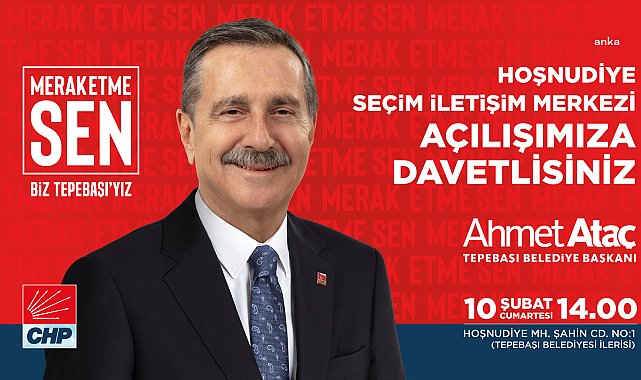 Başkan Ataç, 10 Şubat Cumartesi günü saat 14.00’te Hoşnudiye Mahallesi Şahin Caddesi'nde Seçim İletişim Merkezi’nin açılışını yapacak.