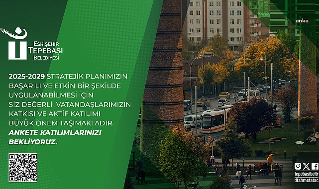 (ESKİŞEHİR) - Tepebaşı Belediyesi, “2025-2029 Stratejik Planı” sürecine vatandaşların da dahil olabilmesi amacıyla anket düzenliyor. Tepebaşı Belediyesi, 2025-2029 Stratejik Planı’nın başarılı ve etkin bir şekilde uygulanabilmesi için vatandaşların da katkısını almak amacıyla anket hazırladı. Vatandaşlar, ankete görselde yer alan QR kodunu okutarak veya belediyenin resmi internet sitesinden ulaşabilecek.