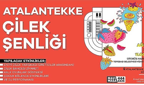 Tepebaşı Belediyesi, Atalantekke Mahallesi’nde 27 Ağustos Pazar günü 11.00-15.00 saatleri arasında ‘Çilek Şenliği’ düzenleyecek.Tepebaşı Belediye Başkanı Ahmet Ataç’ın talimatı ile 2019 yılında dağıtılan 30 bin çilek fidesinin dikimini yapan Atalantekke Mahallesi’ndeki kadın üreticiler, Tepebaşı Kırsal Kalkınma Kurulu tarafından sağlanan eğitimler sayesinde verimli şekilde ürün almayı başardı. Her sene verimli bir hasat dönemi geçiren üretici kadınlar, elde ettikleri başarıyı Çilek Şenliği'yle taçlandıracak. Çilek Şenliği’nde en iyi çilek yarışmasından çocuk eğlence etkinliklerine, halk oyunu gösterisinden DJ performansına kadar birçok aktivite yer alacak. Şenliğe katılanlar çilek bahçesini gezme imkanı da yakalayacak.27 Ağustos Pazar günü 11.00-15.00 saatleri arasında düzenlenecek şenlik için saat 10.00’da Tepebaşı Belediyesi Ana Hizmet Binası önünden araç kalkacak. Şenlikle ilgili detaylı bilgi almak isteyenler, 0 222 211 40 00-8919 numaralı telefondan yetkililere ulaşabilecek.