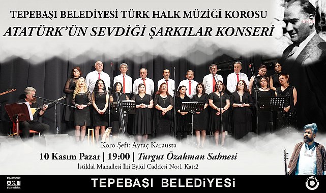 (ESKİŞEHİR)- Tepebaşı Belediyesi tarafından, 10 Kasım Atatürk'ü Anma Günü ve Atatürk Haftası dolayısıyla düzenlenen etkinlikler devam ediyor. Bu kapsamda Türk Halk Müziği Korosu, 10 Kasım'a özel bir konser verecek.Tepebaşı Belediyesi Türk Halk Müziği Korosu, Aytaç Karausta’nın şefliğinde özel bir konser verecek. 'Atatürk’ün Sevdiği Şarkılar’ konserinde, Şef Karausta ve korosu icra edecekleri eserler ile katılımcılara duygu dolu bir gece yaşatacak.10 Kasım Pazar günü saat 19.00’da İstiklal Mahallesi İki Eylül Caddesi üzerinde bulunan Turgut Özakman Sahnesi’nde gerçekleştirilecek konsere katılım ücretsiz olacak.
