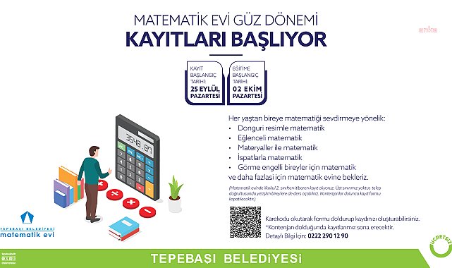 Tepebaşı Belediyesi Matematik Evi’nde farklı tekniklerin uygulandığı güz dönemi matematik kursları başlıyor. Kurs kayıtları, 25 Eylül Pazartesi günü itibariyle online olarak yapılacak.Tepebaşı Belediyesi’nin her yaştan bireyi matematiğin renkli dünyası ile tanıştırmayı amaçlayan Matematik Evi, eğlenceli matematik öğrenme metotlarını Eskişehirlilerle buluşturmayı sürdürüyor.Zor bir ders olarak bilinen matematik, Matematik Evi’ndeki origami, sözsüz ispatlar, materyal destekli ispatlar ve mantık problemleri ile eğlenceli ve merak uyandıran bir hal alıyor. İlkokul 2’nci sınıftan itibaren her yaştan bireyin faydalanabildiği merkezde kurslar, ücretsiz olarak gerçekleştiriliyor.