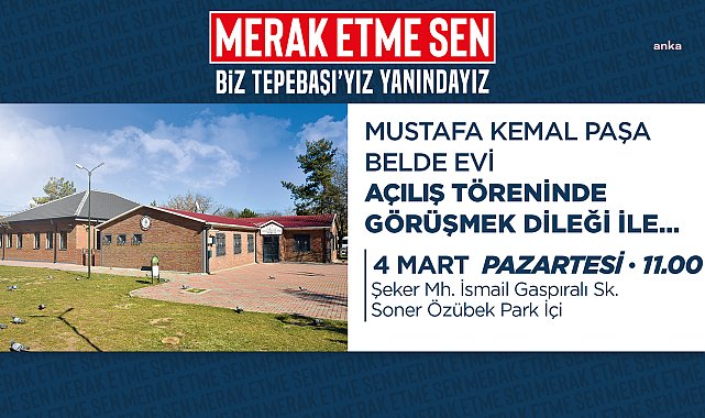 Tepebaşı Belediyesi’nin en beğenilen projelerinden olan ve daha çok kadınların sosyalleşmesi için hayata geçirilen Belde Evleri'ne bir yenisi daha ekleniyor. Yakın zamanda hizmete başlayan Mustafa Kemal Paşa Belde Evi’nin resmi açılışı, 4 Mart Pazartesi günü gerçekleştirilecek.Tepebaşı Belediyesi’nin en beğenilen projelerinden Belde Evleri’ne yenileri eklenmeye devam ediyor.Yapımı tamamlanan ve hizmete sunulan Mustafa Kemal Paşa Belde Evi’nin açılışı, 4 Mart Pazartesi günü gerçekleştirilecek.4 Mart Pazartesi günü saat 11.00’de Şeker Mahallesi İsmail Gaspıralı Sokak Soner Özübek Park içinde düzenlenecek açılış törenine tüm Eskişehirlileri davet eden Başkan Ahmet Ataç, “Tepebaşı’nda herkes için eşit hizmet anlayışıyla çalışmalarımıza devam ediyoruz. Bu kapsamda Mustafa Kemal Paşa Belde Evi açılış törenine tüm hemşehrilerimizi bekliyoruz” dedi.