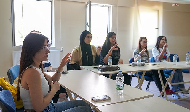 (ESKİŞEHİR)- Tepebaşı Belediyesi 29 Ekim Gençlik Merkezi’nde işaret dili kursuna katılan öğrenciler, temel seviye işaret dilini öğreniyor.Tepebaşı Belediyesi her yıl binlerce kişinin faydalandığı Gençlik Merkezleri ile gençlerin gelişimine destek olmayı ve geleceklerine katkı sağlamayı sürdürüyor. Gençlik Merkezleri’nde gençlere yönelik ücretsiz olarak düzenlenen yaz dönemi programları 22 farklı branşta, 750 öğrencinin katılımıyla devam ediyor. Programlar kapsamında katılımcılara sanattan spora, yabancı dillerden yaratıcı etkinliklere kadar pek çok eğitim olanağı sunuluyor.29 Ekim Gençlik Merkezi’ndeki işaret dili kursu da yoğun katılımla gerçekleştiriliyor. Haftada 2 gün süren 6 saat olarak gerçekleştirilen işaret dili kursuna katılan 25 öğrenci, uzman eğitmenler eşliğinde temel seviye işaret dilini öğreniyor.