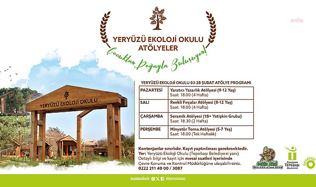 (ESKİŞEHİR)- Tepebaşı Belediyesi'nin Sakin Okul Eğitim Kültür ve Sanat Derneği iş birliğinde hayata geçirdiği 'Yeryüzü Ekoloji Okulu'nun şubat ayı programı başlıyor. 3-28 Şubat günleri arasında gerçekleşecek çalışmalar arasında yaratıcı yazarlık, renkli fırçalar, seramik ve minyatür torna atölyesi yer alıyor.Tepebaşı Belediyesi’nin, Sakin Okul Eğitim Kültür ve Sanat Derneği ile birlikte hayata geçirdiği Yeryüzü Ekoloji Okulu Projesi, kentte yaşayan insanlar ve özellikle çocuklar için deney, gözlem ve eğitim alanları sunuyor. Tepebaşı Belediyesi Hizmet Binası yanında hazırlanan alanda faaliyetlerini gerçekleştiren Yeryüzü Ekoloji Okulu doğayla ilişki kurmayı, doğaya erişimi, bir arada yaşama kültürünü, sürdürebilirliği, yerel ekosistemle oynamayı, toplumsal aktivizmi, mekânı tanımayı ve mekân bilincini ön plana çıkarmayı amaçlıyor.Yeryüzü Ekoloji Okulu’nda 3-28 Şubat günleri arasında gerçekleşecek atölye çalışmaları arasında; Yaratıcı yazarlık atölyesi (9-12 yaş), renkli fırçalar atölyesi (8-12 yaş), seramik atölyesi (18 yaş ve üzeri) ve minyatür torna atölyesi (5-7 yaş) yer alıyor.Tepebaşı Belediyesi yetkilileri, kontenjanların sınırlı olduğu atölyeler hakkında bilgi almak isteyen vatandaşların, Çevre Koruma ve Kontrol Müdürlüğü’ne ulaşılabileceğini bildirdi.