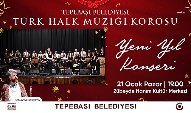 Tepebaşı Belediyesi Türk Halk Müziği Korosu, Yeni Yıl Konseri ile izleyici karşısına çıkacak.Tepebaşı Belediyesi Türk Halk Müziği Korosu, Aytaç Karausta şefliğinde çalışmalarına devam ederken birbirinden özel konser programları düzenlemeyi sürdürüyor.Bugüne kadar sahnelediği performanslarla beğeniyle takip edilen koro, Tepebaşı Belediyesi Zübeyde Hanım Kültür Merkezi’nde gerçekleşecek konserde, sevilen eserleri Şef Aytaç Karausta yönetiminde yeni yıl için icra edecek. Tepebaşı Belediyesi Türk Halk Müziği Korosu’nun çeşitli yörelerden derlenen eserleri seslendireceği konser, 21 Ocak Pazar günü saat 19.00’da ücretsiz olarak izlenebilecek.
