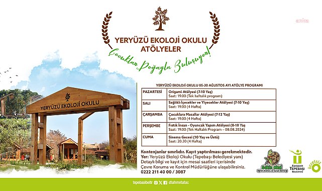 (ESKİŞEHİR) - Tepebaşı Belediyesi ile Sakin Okul Eğitim Kültür ve Sanat Derneği iş birliğinde hayata geçirilen Yeryüzü Ekoloji Okulu’nda ücretsiz gerçekleştirilen atölye çalışmaları kapsamında ağustos ayı programı başlıyor.Tepebaşı Belediyesi Hizmet Binası yanında hazırlanan alanda faaliyetlerini gerçekleştiren Yeryüzü Ekoloji Okulu; doğayla ilişki kurmayı, doğaya erişimi, bir arada yaşama kültürünü, sürdürebilirliği, yerel ekosistemle oynamayı, toplumsal aktivizmi, mekanı tanımayı ve mekan bilincini ön plana çıkarmayı amaçlıyor.Yeryüzü Ekoloji Okulu’nda 5-30 Ağustos 2024 tarihleri arasında gerçekleşecek atölye çalışmaları arasında; origami atölyesi (7-10 yaş), sağlıklı yiyecekler ve içecekler atölyesi (7-10 yaş), çocuklara masal atölyesi (7-12 yaş), fıstık insan-oyuncak yapım atölyesi (8-10 yaş), ve sinema gecesi (10 yaş ve üstü) yer alıyor.Tepebaşı Belediyesi yetkilileri, kontenjanların sınırlı olduğu atölyeler hakkında bilgi almak isteyenlerin, Çevre Koruma ve Kontrol Müdürlüğü’ne 0 (222) 211 40 00/3087 numaralı telefondan ulaşılabileceğini bildirdi.