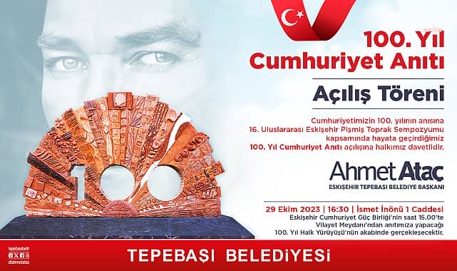 Tepebaşı Belediyesi’nin bu yıl 16’ncısını düzenlediği ve Cumhuriyet'in 100’üncü yılına adanan Uluslararası Pişmiş Toprak Sempozyumu’nda 25 sanatçının beraber emek vererek ortaya çıkarttığı 100. Yıl Cumhuriyet Anıtı’nın açılışı gerçekleştirilecek.Her yıl düzenlenen Uluslararası Pişmiş Toprak Sempozyumu’nun bu yıl 16’ncısı farklı bir konseptte düzenlendi. Cumhuriyetin 100’üncü yılına adanan 16’ncı Pişmiş Toprak Sempozyumu'nda 25 sanatçı el ele emek vererek ortak bir anıt ortaya koydu.“CUMHURİYET IŞIĞIMIZI TEMSİL EDİYOR”Eser ile ilgili konuşan Tepebaşı Belediye Başkanı Ahmet Ataç, “Cumhuriyetimizin 100. yılı şerefine 25 sanatçımızın emekleri ile ortaya çıkan eserimiz, Mustafa Kemal Atatürk’e olan minnetimizin küçük bir göstergesi. Bu güzide eser şehrimizin kimliği olmakla birlikte, cumhuriyet ışığımızı da temsil ediyor. Bu anlamlı eserimizin açılışını da 29 Ekim Cumhuriyet Bayramı’nda gerçekleştireceğiz. Ben tüm Eskişehirlileri anıtımızın açılışına bekliyorum” dedi.Anıt, Eskişehir Tepebaşı ilçesinde Hoşnudiye Mahallesi İsmet İnönü-1 Caddesi’nde yer alıyor. Cumhuriyet Anıtı’nın açılışı, 29 Ekim Pazar günü saat 15.00’te Eskişehir Cumhuriyet Güç Birliği’nin Vilayet Meydanı’ndan Cumhuriyet Anıtı'na yapacağı 100. Yıl Halk Yürüyüşü sonrasında gerçekleşecek.
