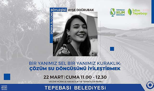 Tepebaşı Belediyesi, 22 Mart Dünya Günü dolayısıyla ‘Bir Yanımız Sel Bir Yanımız Kuraklık: Çözüm Su Döngüsünü İyileştirmek’ konulu söyleşi düzenleyecek. Suyun önemi, dünya çapında su kaynaklarının korunması ve suyun sürdürülebilir yönetimi konusunda farkındalık oluşturmak amacıyla Vecihi Hürkuş Havacılık ve Teknoloji Parkı’nda Tepebaşı İklim Sözcüsü Ayşe Doğrubak tarafından ‘Bir Yanımız Sel Bir Yanımız Kuraklık: Çözüm Su Döngüsünü İyileştirmek’ konulu sunum ve söyleşi düzenlenecek. Söyleşi, 22 Mart Cuma günü 11.00-12.30 saatleri arasında Vecihi Hürkuş Havacılık ve Teknoloji Parkı’nda ücretsiz olarak yapılacak.