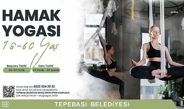 Tepebaşı Belediyesi tarafından düzenlenecek hamak yogası programı için kayıtlar başladı.Tepebaşı Belediyesi, her yaştan kent sakini için fayda sağlayacak fiziksel etkinlikler düzenlemeye devam ediyor. Bu kapsamda gerçekleştirilecek hamak yogası programı için kayıtlar başladı.Kayıtları 7 Ocak Pazar gününe kadar devam edecek hamak yogası eğitimleri, Behiç Erkin Halı Sahası Çok Amaçlı Salon’da düzenlenecek. Vücut esnekliğini ve dengesini artırmasının yanı sıra sindirim ve lenfatik sistemler ile kan dolaşımının gelişmesine katkıları ile de bilinen hamak yogası eğitimleri, uzman eğitmenler gözetiminde gerçekleştirilecek.Hamak yogasına kayıtlar, duyuru görselindeki QR kod üzerinden veya 'http://tinyurl.com/hamakyoga' linkine tıklayarak ulaşılan form doldurularak yapılıyor. Kontenjanların sınırlı olduğu ve 18-60 yaş arası vatandaşların faydalanabileceği hamak yogası ücreti ve kayıt şartları hakkında bilgi almak isteyen vatandaşlar, 0 (222) 324 25 22 numaralı telefondan yetkililere ulaşabiliyor.