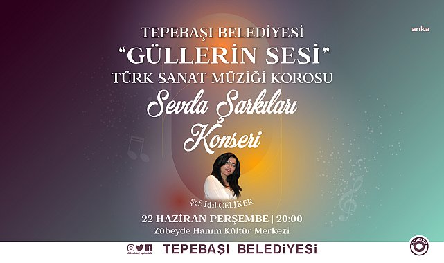 Tepebaşı Belediyesi Güllerin Sesi Türk Sanat Müziği Korosu, ‘Sevda Şarkıları’ adlı konser ile Eskişehirli müzikseverler ile buluşacak.Tepebaşı Belediyesi TSM Korosu, çalışmalarına devam ederken düzenlenen konser programları ile Eskişehirlilerin karşısına çıkmaya devam ediyor. ‘Sevda Şarkıları’ adlı konser de İdil Çeliker’in şefliğinde Zübeyde Hanım Kültür Merkezi’nde, 22 Haziran Perşembe günü saat 20.00’de ücretsiz olarak düzenlenecek. Etkinlikle ilgili bilgi almak isteyen vatandaşlar, 0 (222) 221 22 06 numaralı telefondan yetkililere ulaşabilecek.